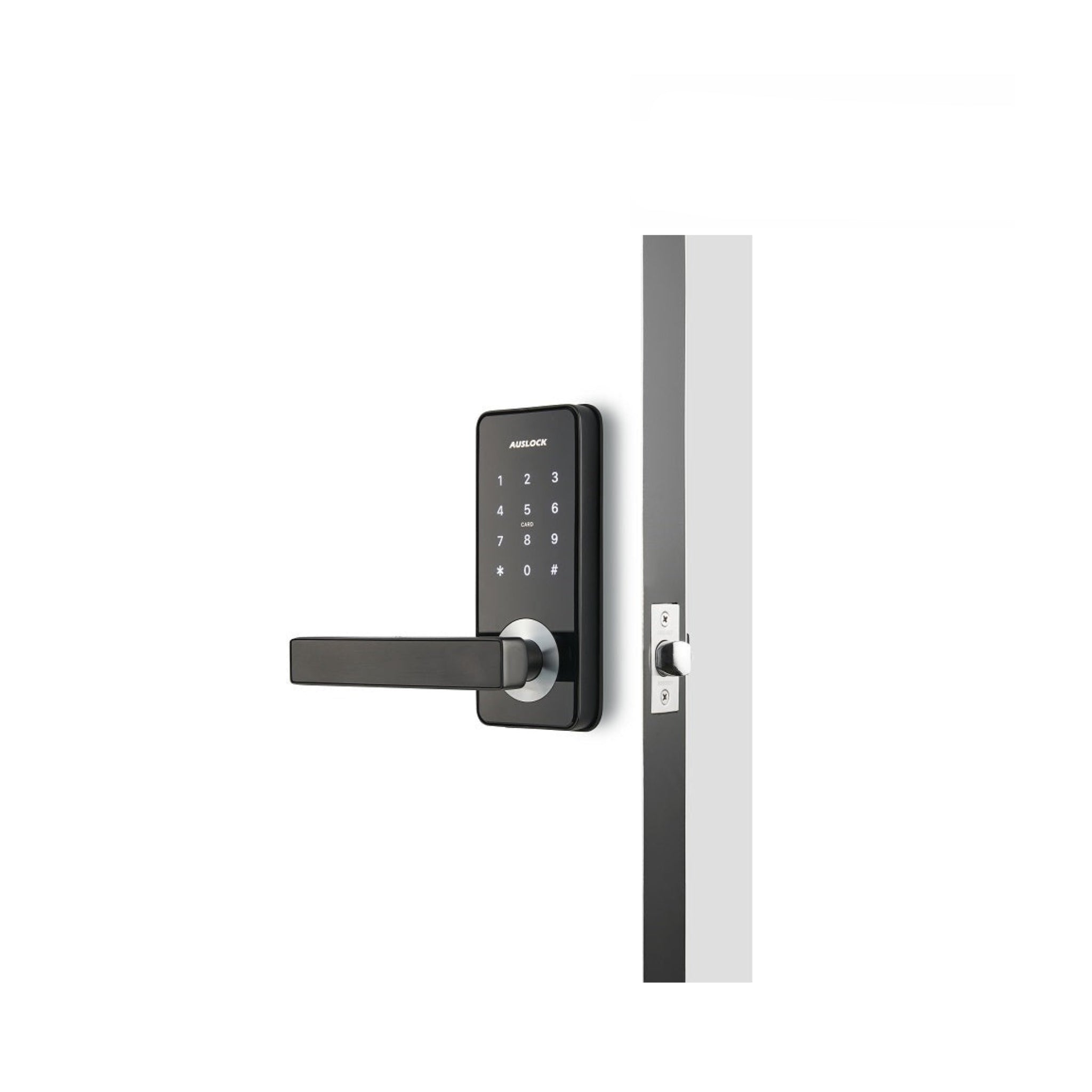 This smart lock offers 5 reliable unlocking methods: Wi-Fi app, Bluetooth app, PIN code, RFID card, and mechanical key. Manage multiple locks effortlessly from anywhere using the AUSLOCK app (Gateway Bridge required). The lock’s compact design fits easily into wooden doors, with easy handle settings to suit different access needs.