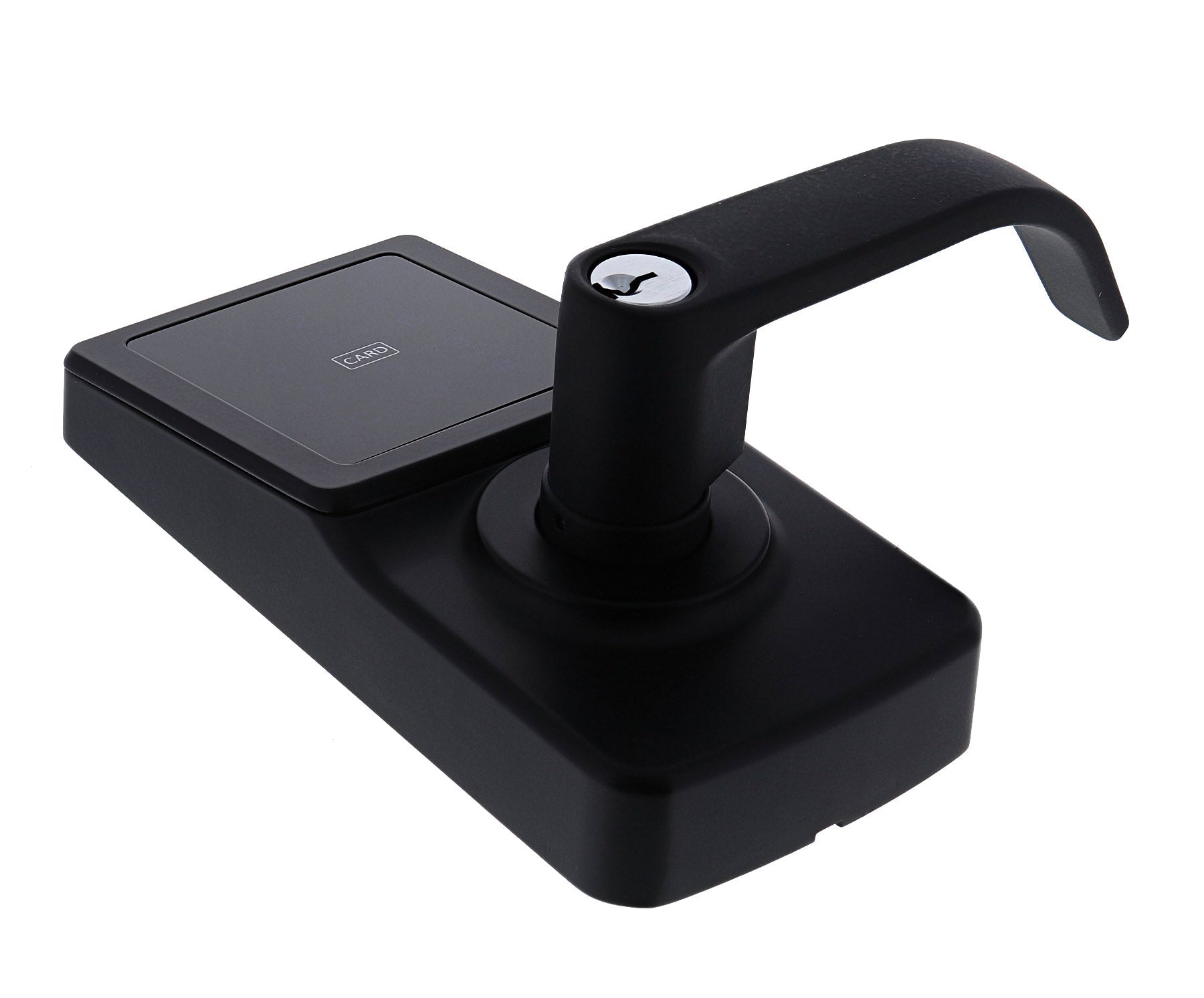 The Carbine CEL3in1 digital touchscreen lock offers keyless entry via code, RFID cards, or NFC-enabled smartphones. Designed for medium-use doors, it fits standard 54 mm lockset holes and doors 35-51 mm thick.