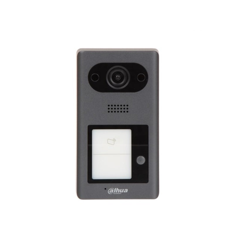 Secure and modern, the Dahua IP Video Door Station features a 2MP HD camera, integrated card reader, and one-touch call button — ideal for residential entry control. With a sleek black finish, IP65 weather resistance, and IK08 vandal protection, it ensures clear communication and durable performance in any environment.