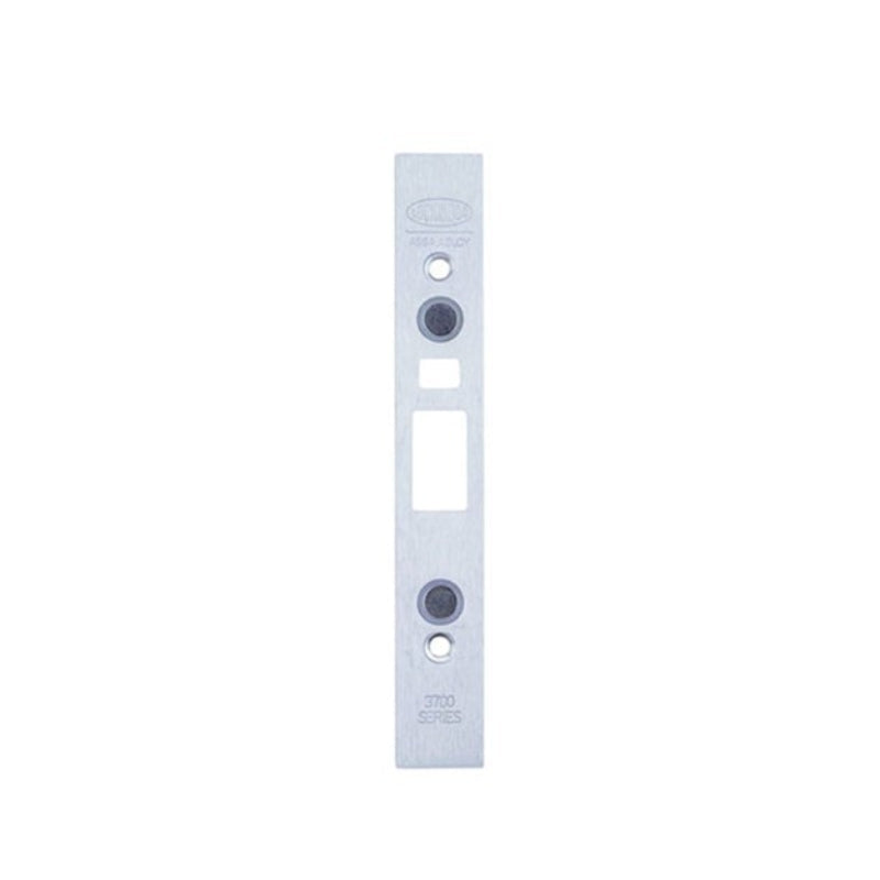 Compatible magnet face plate for Lockwood Selector 3770 series mortice locks. Designed for use with ES2100 multifunction strike (PA102100000) to enable door position monitoring. Features two integrated door magnets and a satin chrome finish.