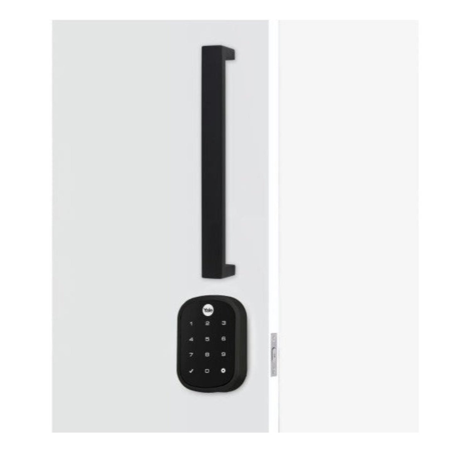 The Yale Assure SL Entrance Set features a keyless smart lock with a slim, modern 143x600 mm pull handle in a matt black finish. It offers secure digital access via the Yale Access app, key card, or optional keypad. Suitable for timber doors, this trade pack is designed for streamlined installation and smart home integration when paired with compatible accessories.